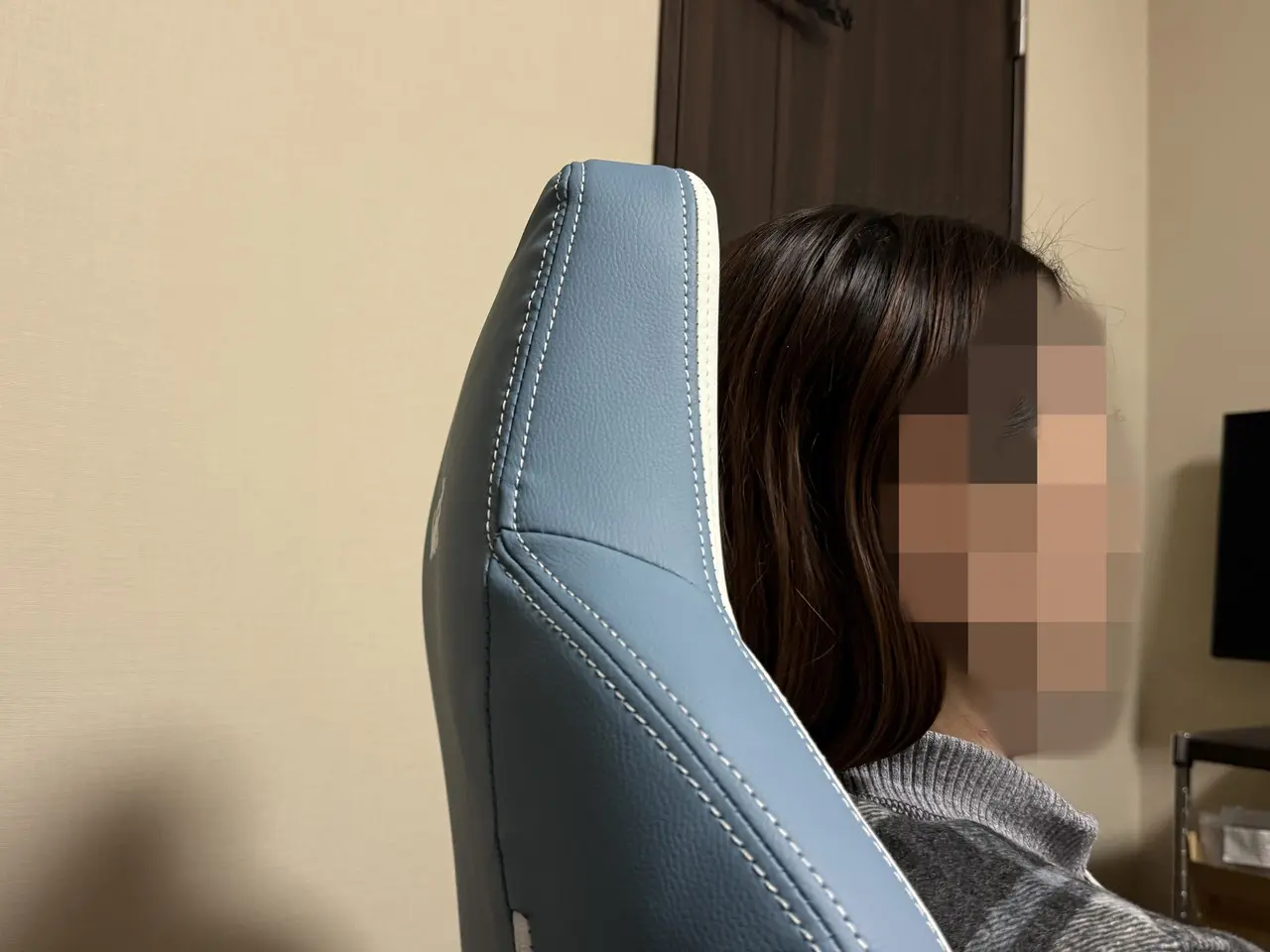 ただし、注意点もあります。本製品の推奨身長は180cmまでとされており、筆者(180cm)が座った場合、背もたれ上部の本来は頭部を支える位置が、首あたりに当たる形となりました。そのため、長時間着座時にはやや違和感があり、座った際の快適さは若干損なわれる印象です。