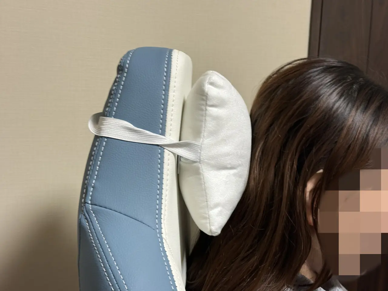 本製品はチェア自体に可動式ヘッドレストが備わっていない代わりに、着脱可能な3Dヘッドレストクッションが付属します。位置や角度を調整して首元にフィット。リクライニング時も頭部を安定して支えてくれます。