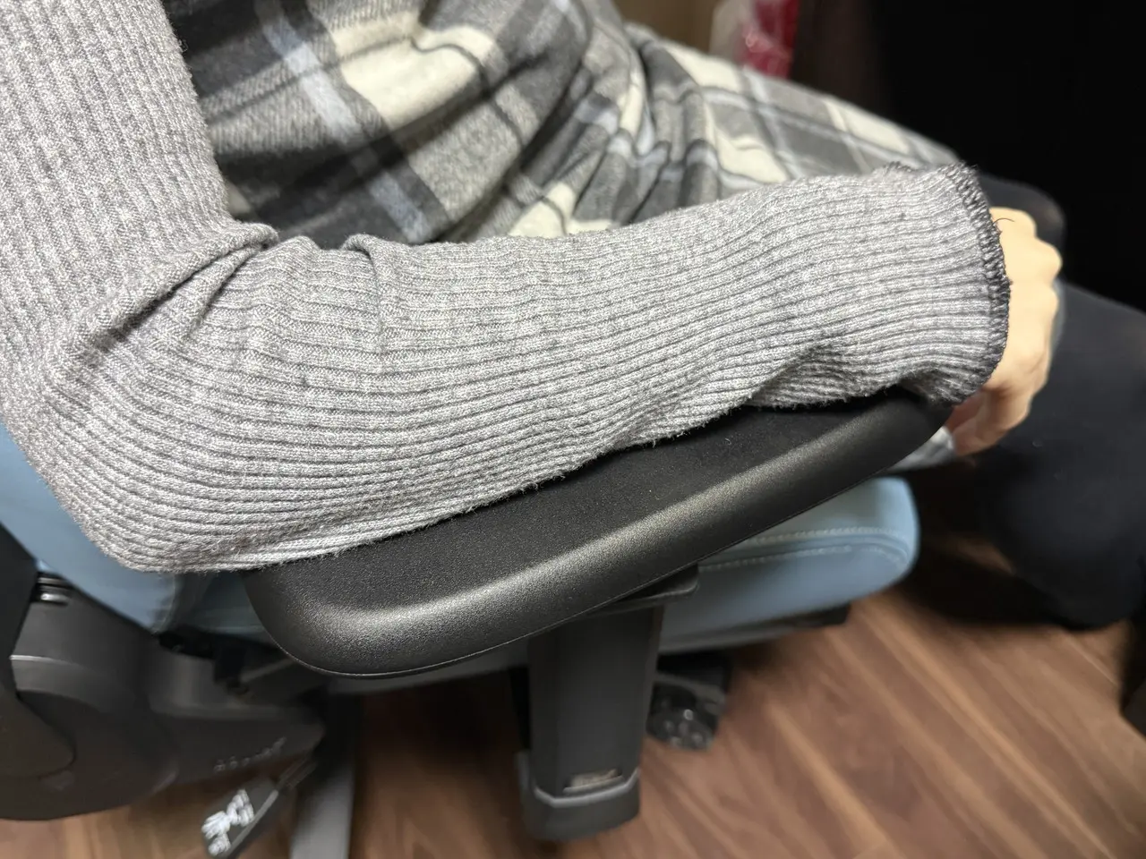 そして、前後・高さ・角度の3方向に調整できる3Dアームレストも優れており、肘を自然に預けやすい位置を作りやすいです。肘が浮いたり、肩が持ち上がったりしにくく、肩や首まわりの余計な緊張を抑えやすいと感じました。