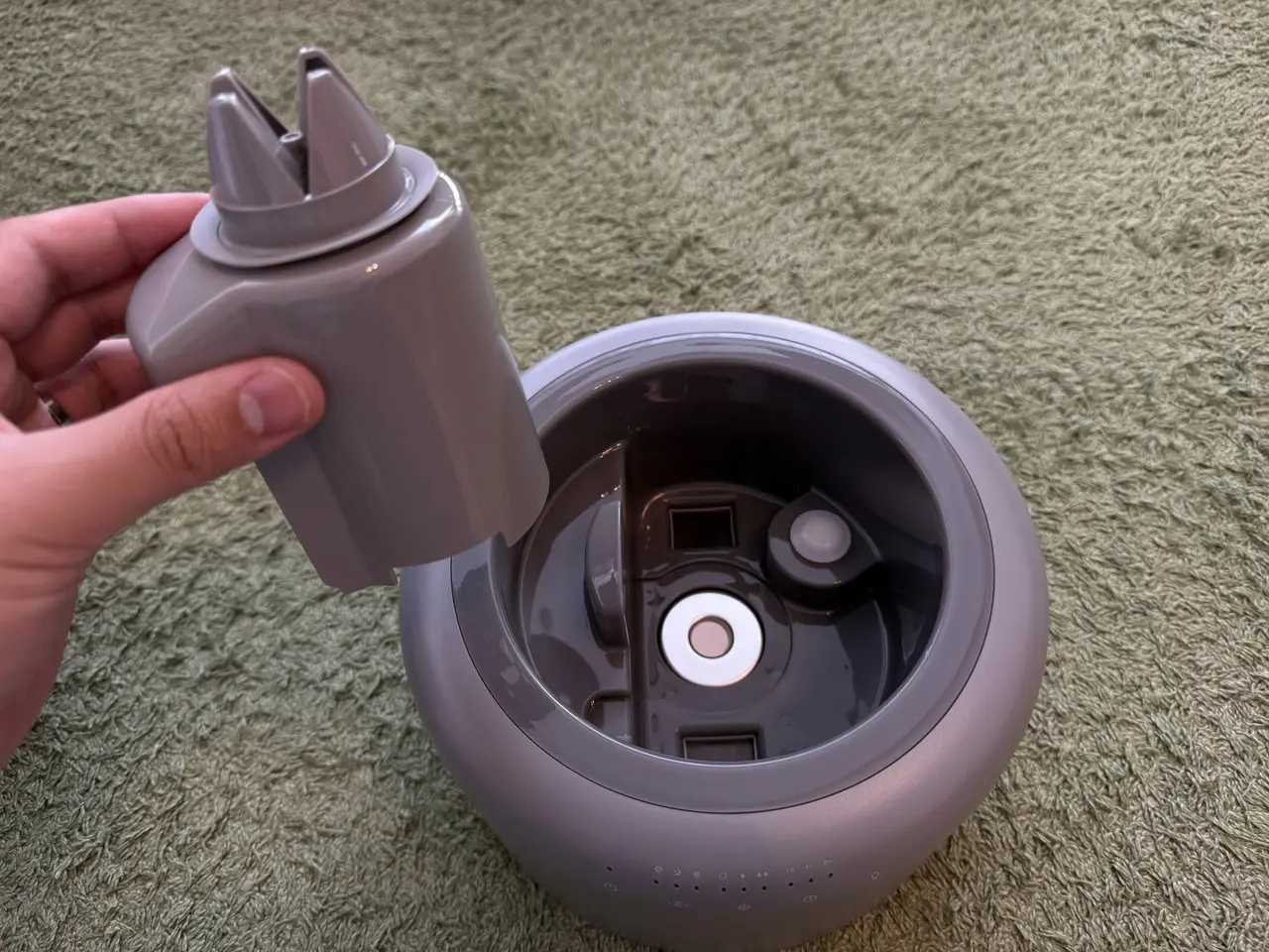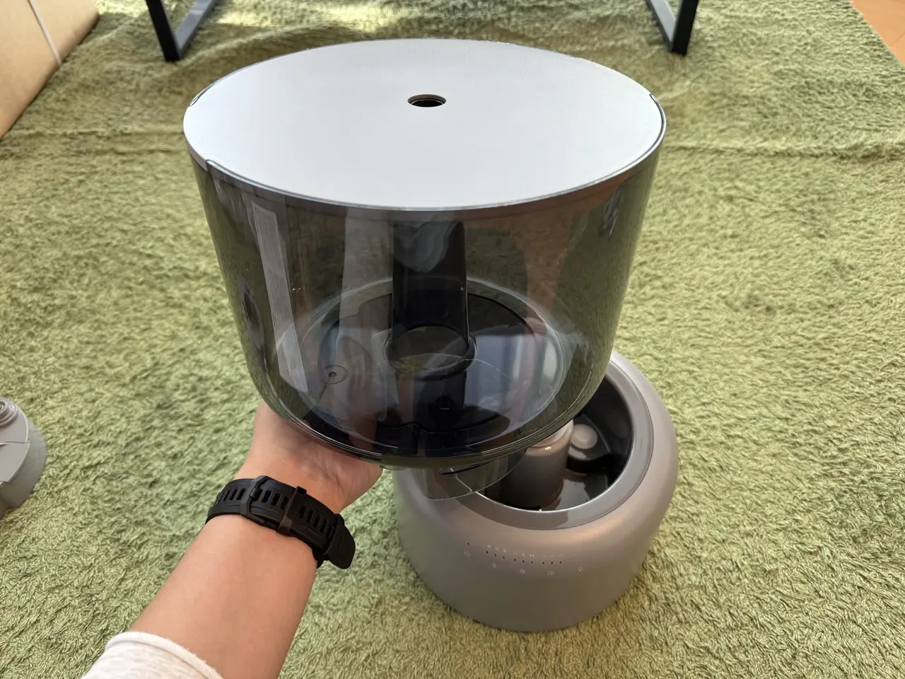 そして給水済みのタンクを加湿器本体に載せます。