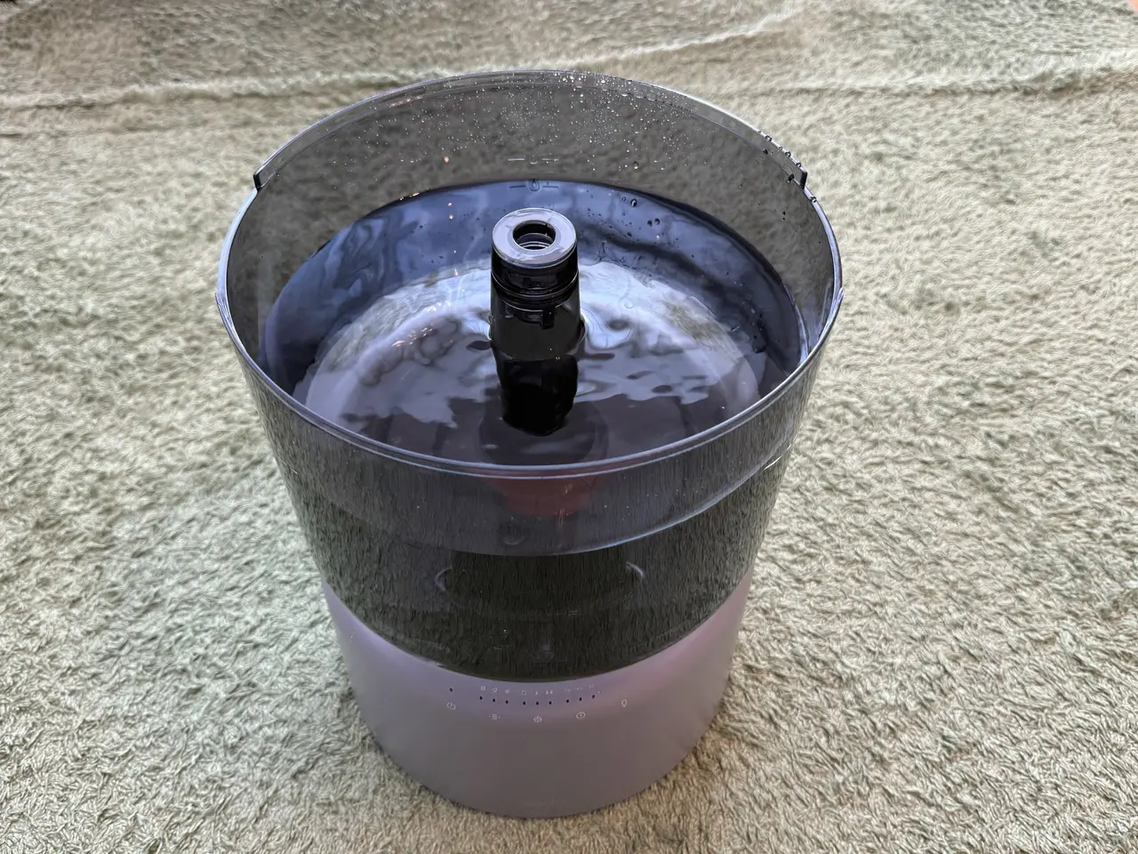 実際に1週間連続で運転していますが、現時点でタンク内や吹き出し口にぬめりや異臭などは一切なく、常に清潔な状態が保たれています。給水さえしておけば、加湿も除菌も自動で完結し、日々のメンテナンスをほとんど意識せずに使える点は非常に快適です。