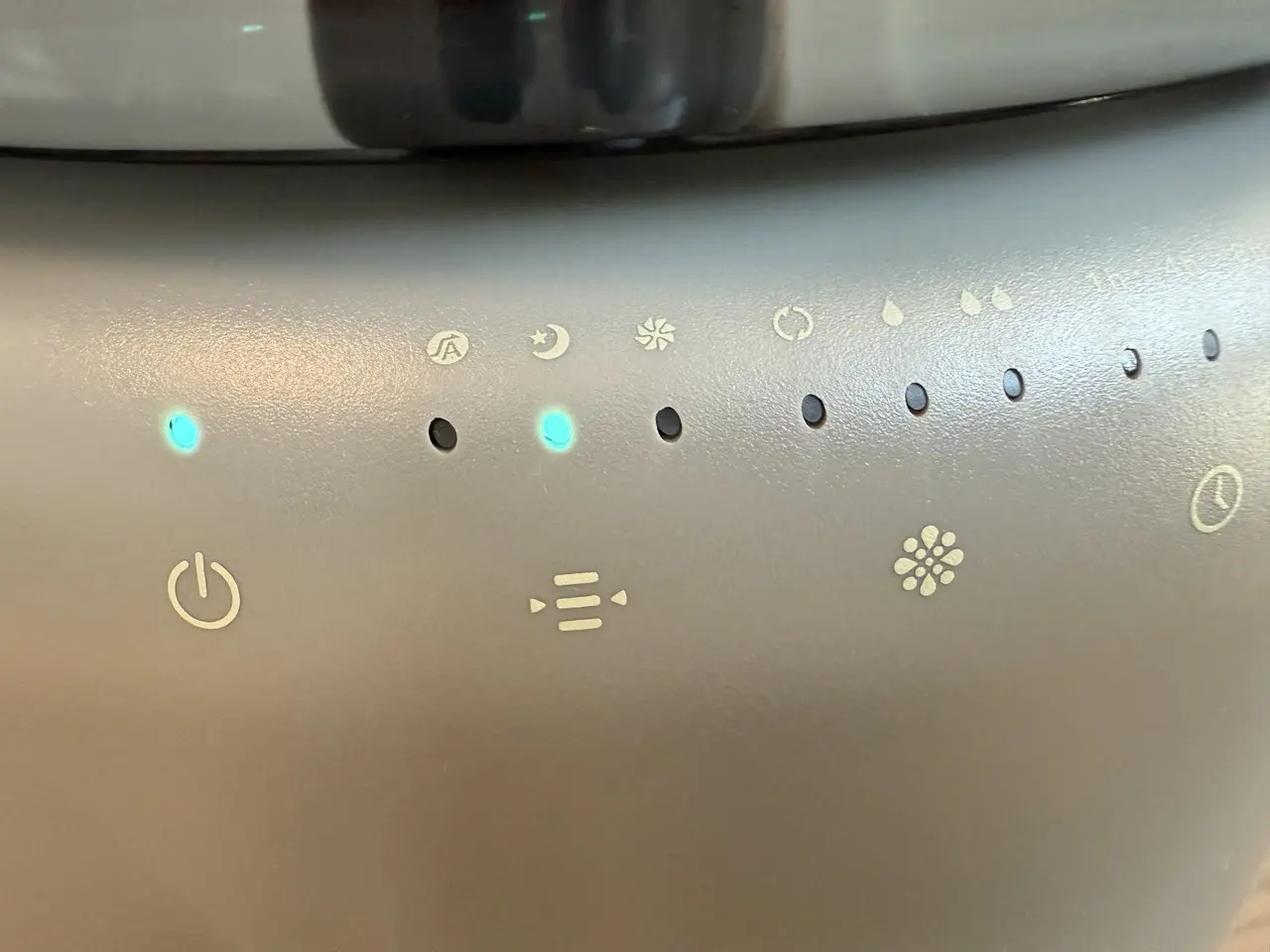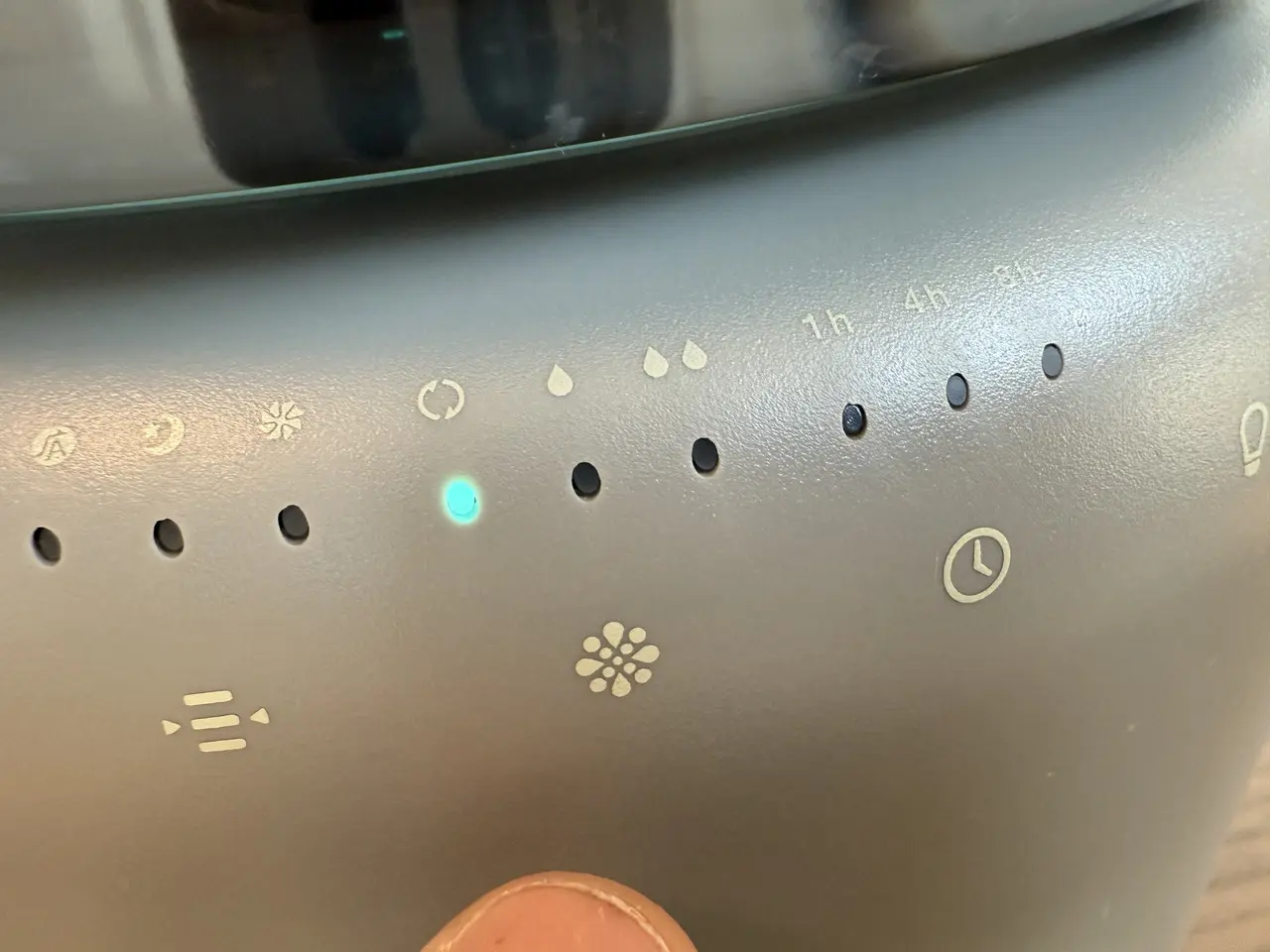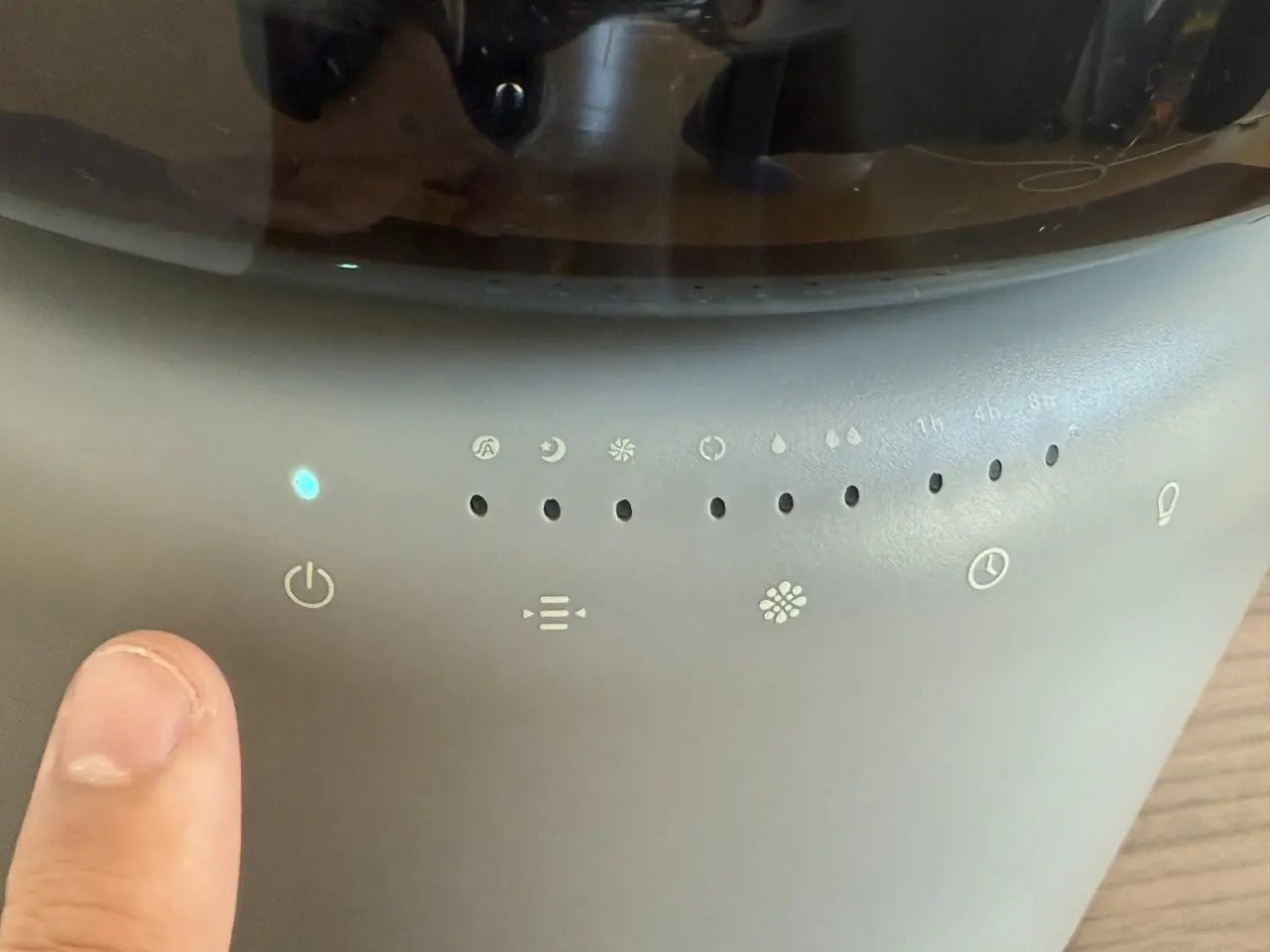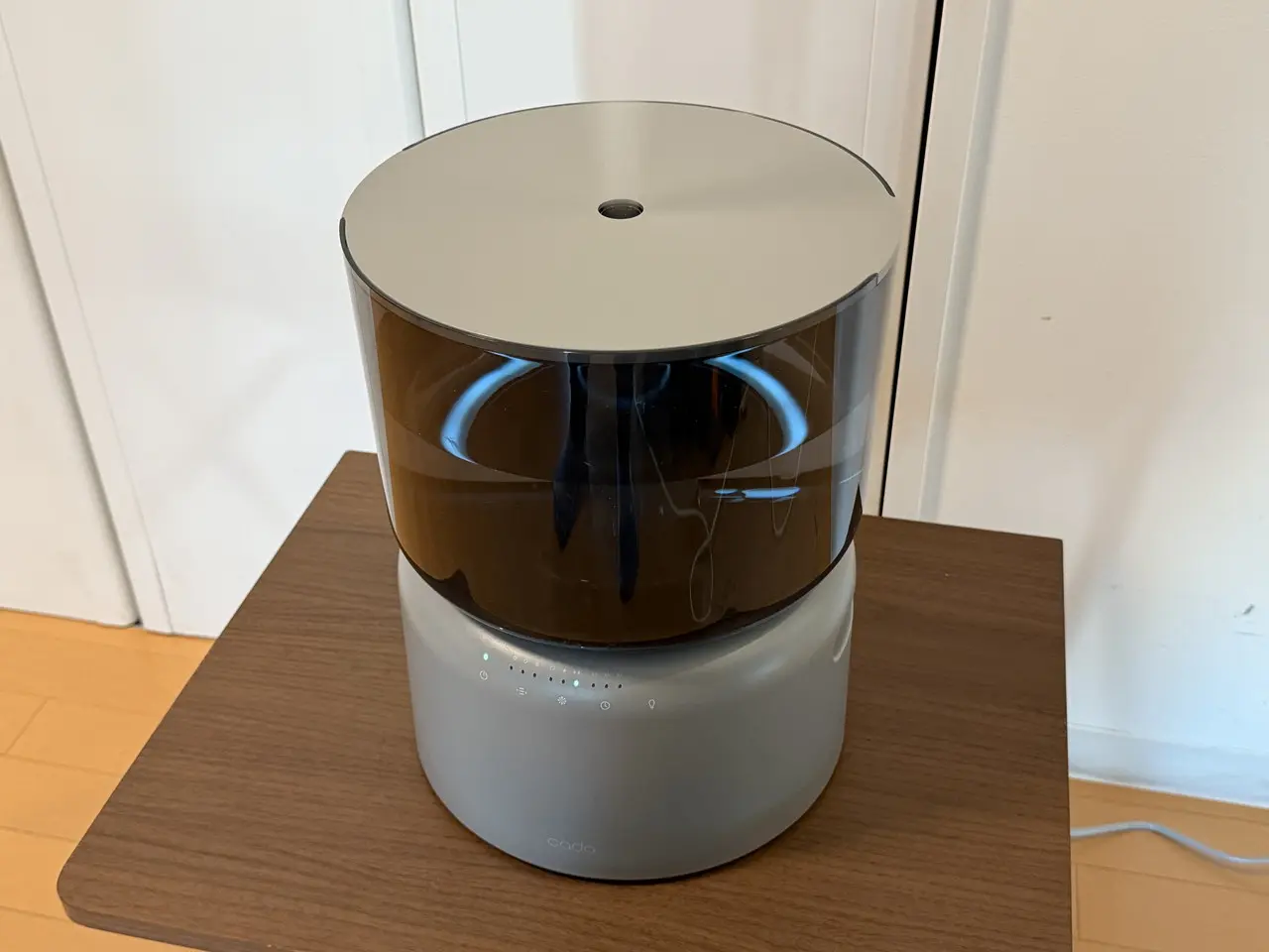 あとは電源コードとコンセントに繋ぎ、操作パネルの電源アイコンをタップすれば、加湿が開始されます。