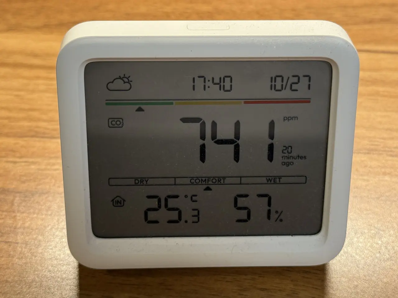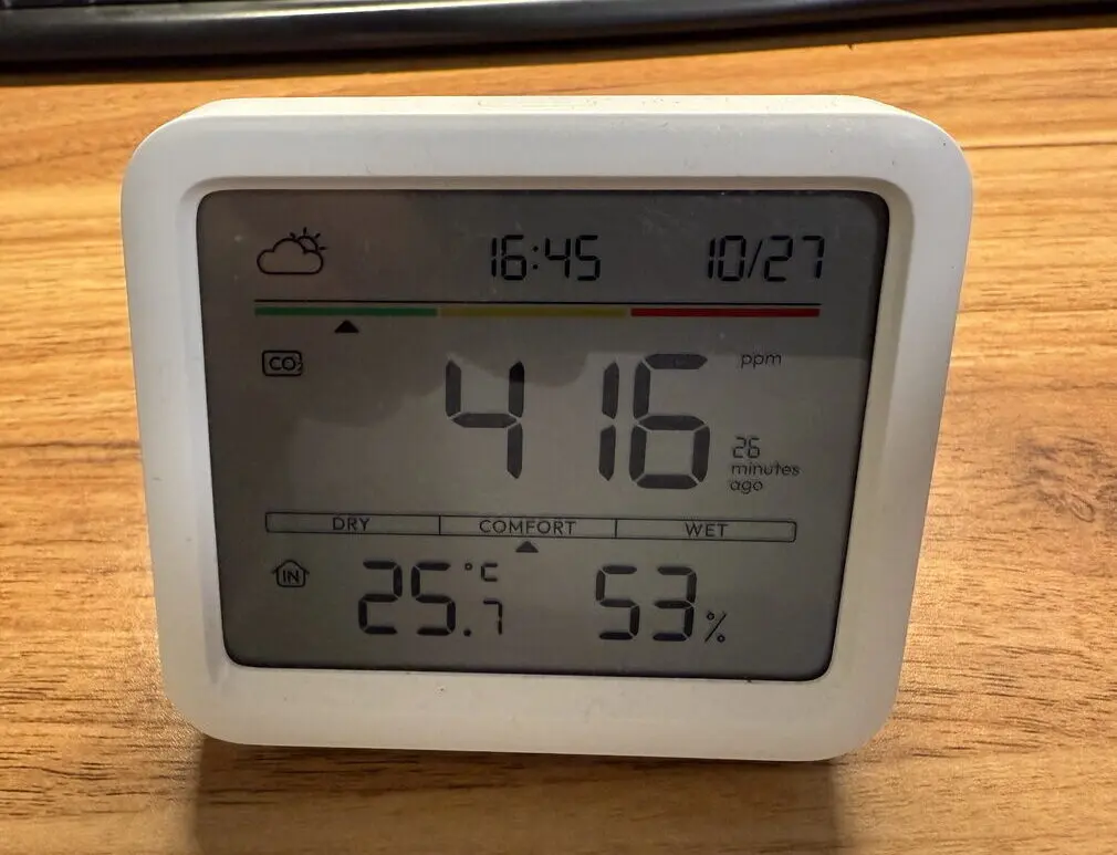 実際に間欠モードで運転したところ、約1時間で室内の湿度が53%から57%へ上昇し、短時間でしっかりと効果を体感できました。
