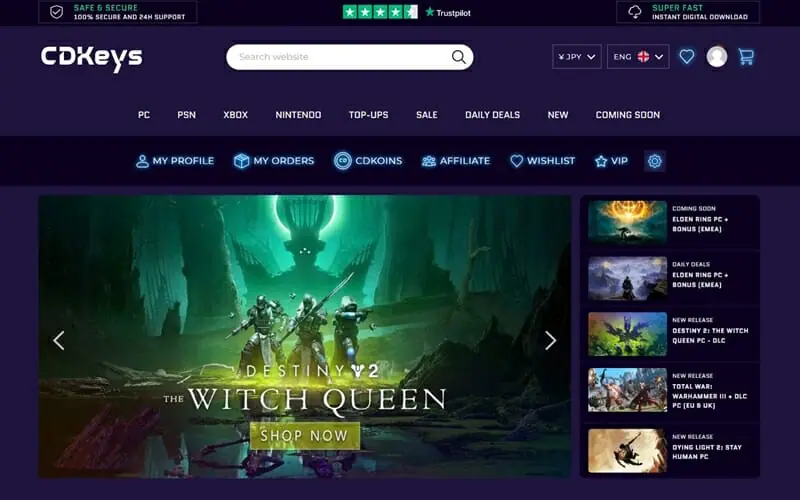 複数ある鍵屋の中でも特に『CDKeys』(CDKeys.com)は、割引率が高く、日本のSteam・Originアカウントでも使用できるグローバル版のキーを多数販売していることもあり、日本からの利用者も多いです。