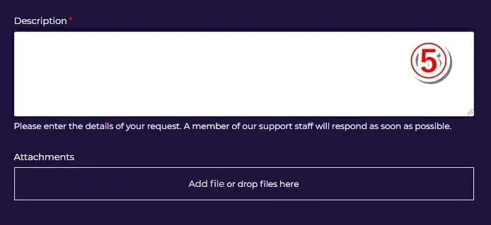 そして最後の "Description"には、肝心の問い合わせ本文を記述していきます。