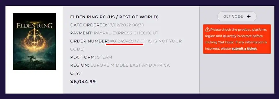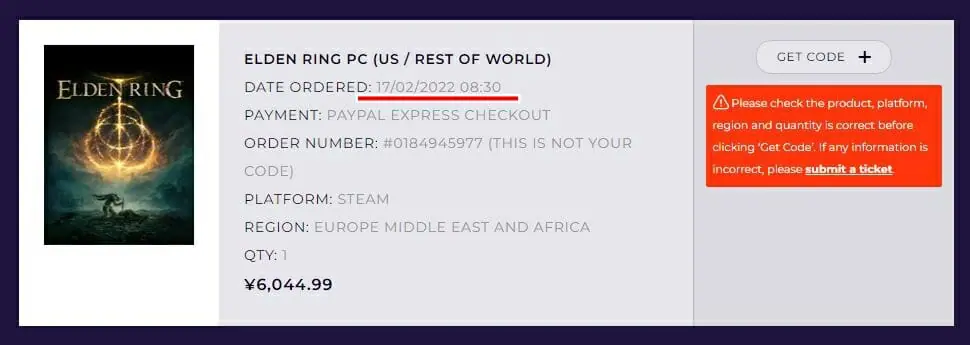 I purchased the ELDEN RING product key for pc(steam) on 17/02/2022 08:30.
