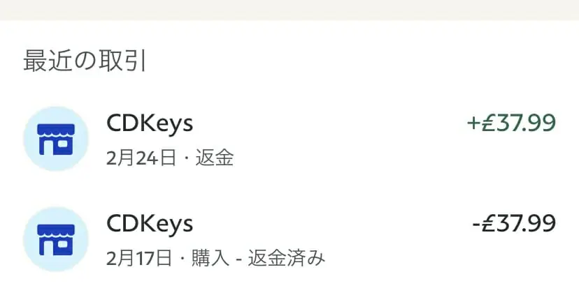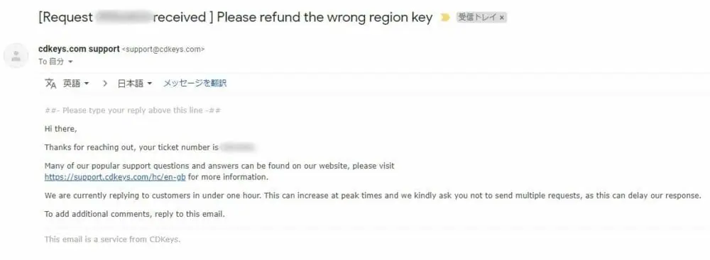 "おま国" に遭遇してしまうと購入代金が戻ってこないのではないか?泣き寝入りか?と不安になりますが、CDKeysの場合、このようにキチンと返金してもらうことが可能です。