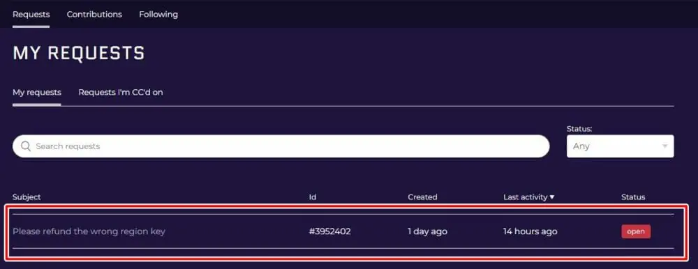 CDKeysへの返金申請は、公式サイトのサポート画面より行うことが出来ます。