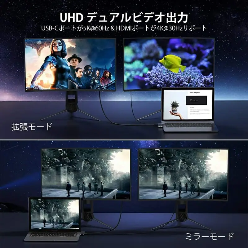 - デュアルモニター出力に対応
