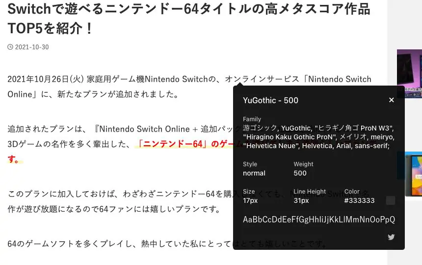 デベロッパーツールでCSSを確認するよりも簡単ですね!