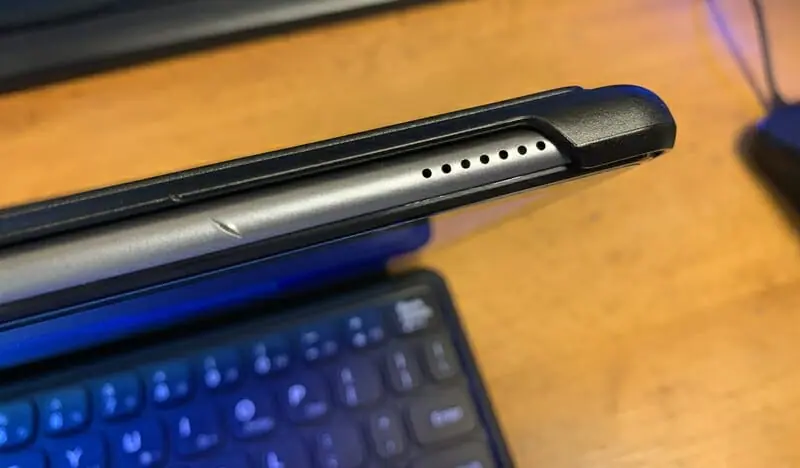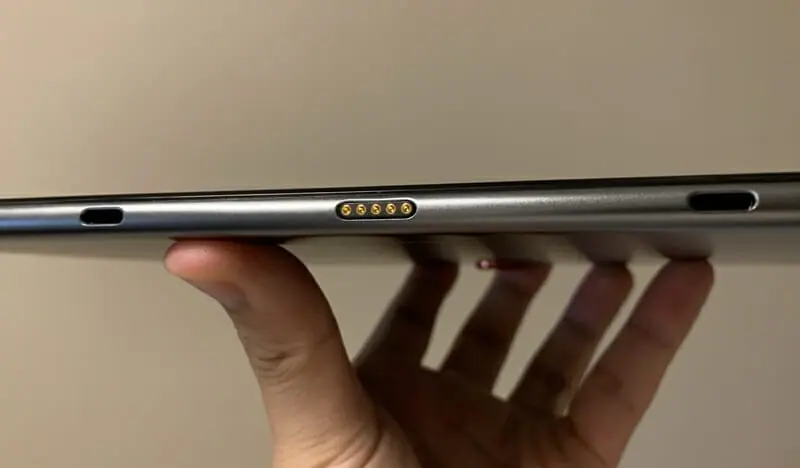 ▼本体下部。専用のキーボード付きケースに接続するための端子が用意されている。