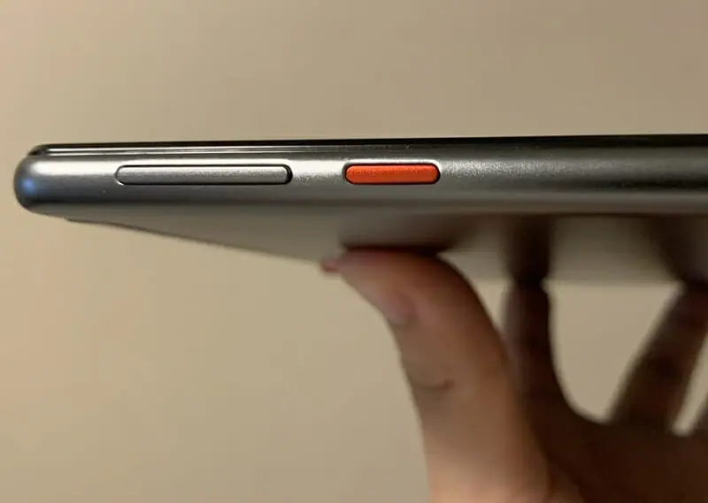 ▼本体左側面。音量調節ボタン、電源ボタンが用意。