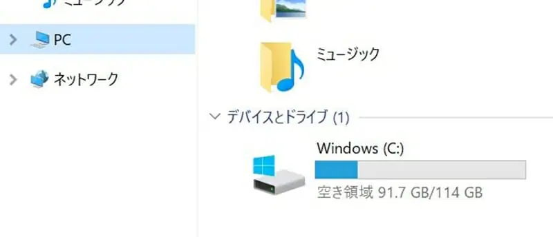 ▼ストレージは初期状態で約90GB分が利用可能であった。
