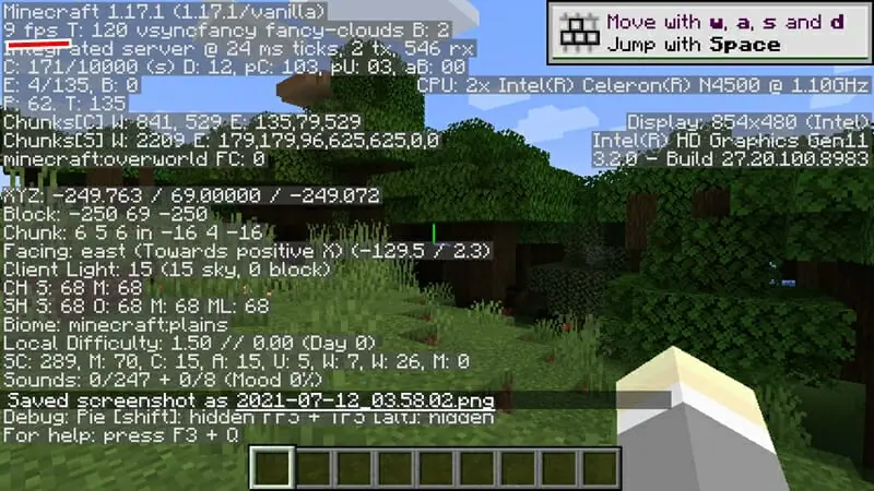 マインクラフトプレイ時には、画質設定を最低まで下げたにもかかわらず、平均10fpsほどのパフォーマンスであった。