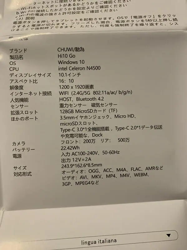 今回紹介した『CHUWI Hi10 Go』について、特長をまとめると以下の通りだ。