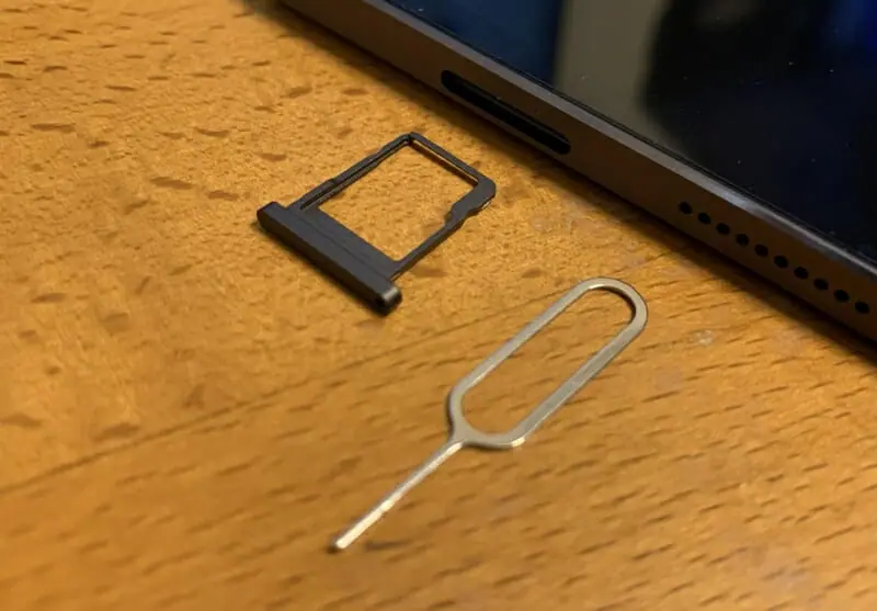 カードスロットは、付属のピンを挿し込むことで開けることが出来る。