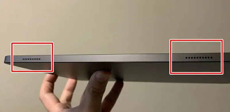 また、本体左右の側面には、それぞれ2基ずつ(計4基)のスピーカーが内蔵されてる(クアッドスピーカー)。