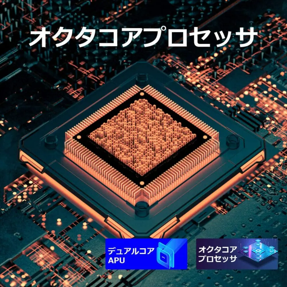CPUにはパフォーマンスの高いオクタコア(8コア)プロセッサーを採用。大抵の作業を快適にこなすことが出来る。