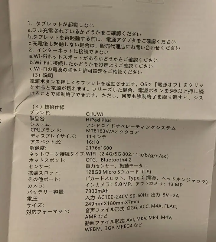 今回紹介した『CHUWI Hipad Plus』について、特長をまとめると以下の通りだ。