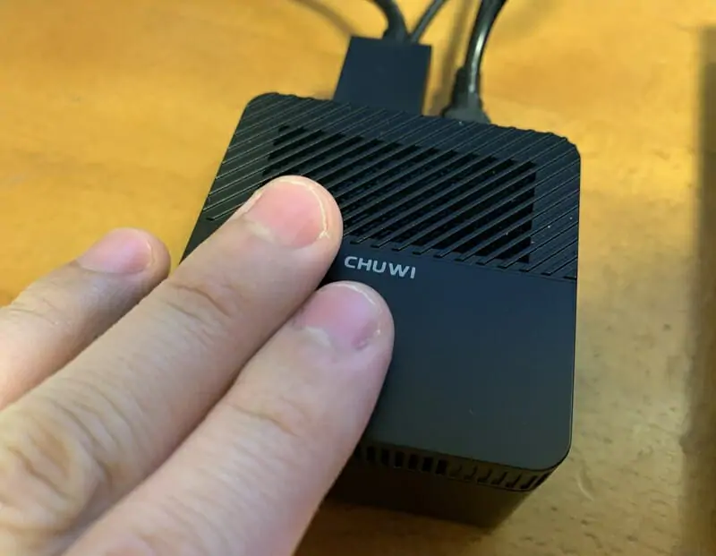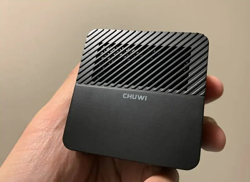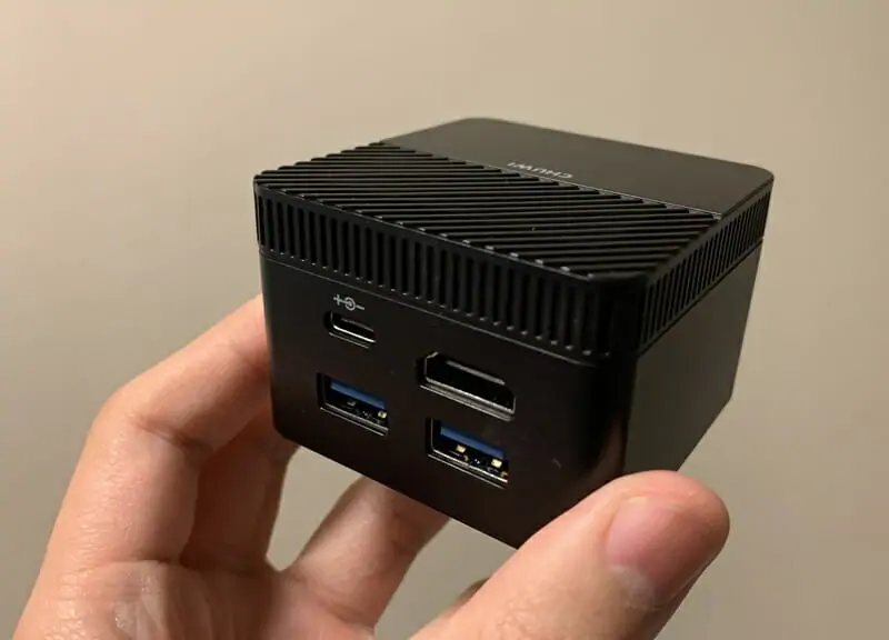 『CHUWI LarkBox』は わずか6センチ×6センチ×4センチ、127グラムという非常にコンパクトなサイズを実現した、ミニデスクトップPCだ。