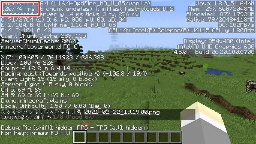 結果的に『Optifine』を導入してある状態では、快適に遊ぶことが出来た。