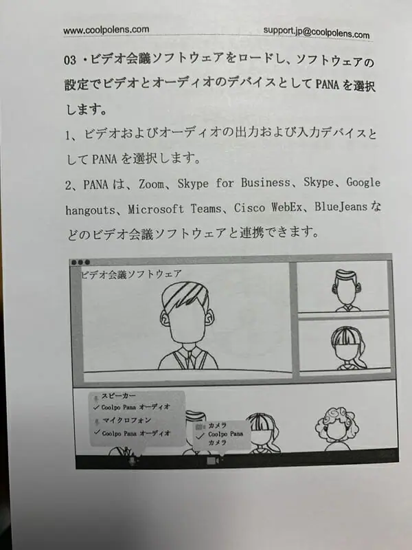 | 互換性 | Zoom、Skype for Business、Skype、Google hangouts、Microsoft Teams、Cisco WebEx、BlueJeans など | |
