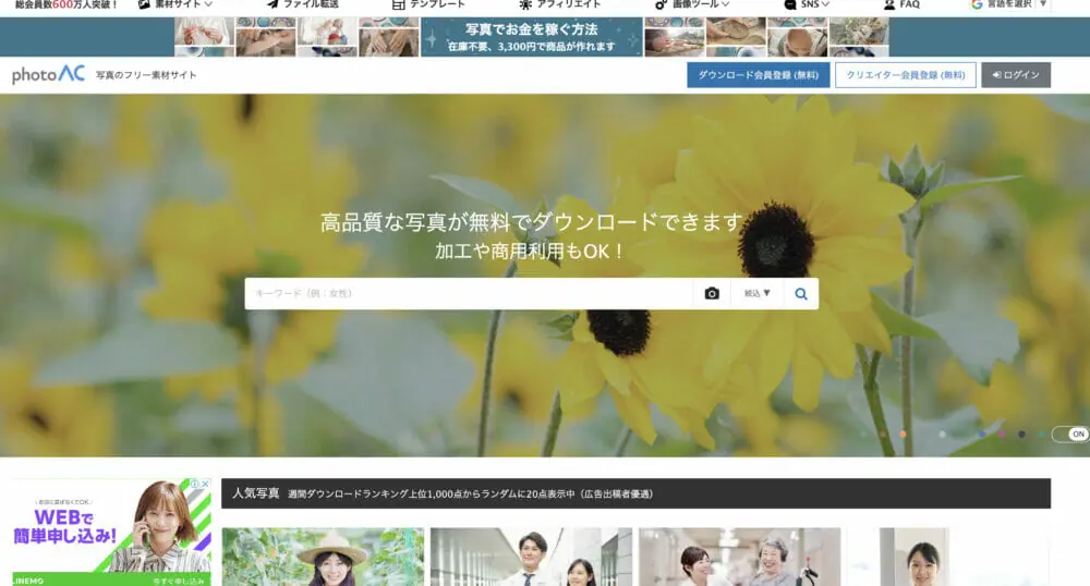 220万枚以上の素材を掲載する国内最大級のフリー写真素材サイトです。