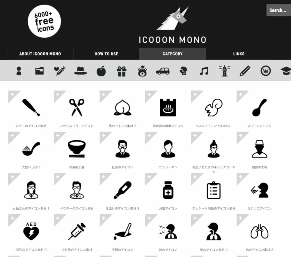 6000種以上のアイコンが取り揃えられています。サイズや色変更も対応しています。