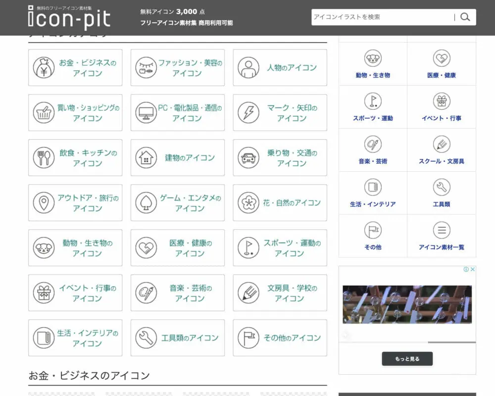 細い線で描かれたシンプルなアイコンが特徴のサイトです。