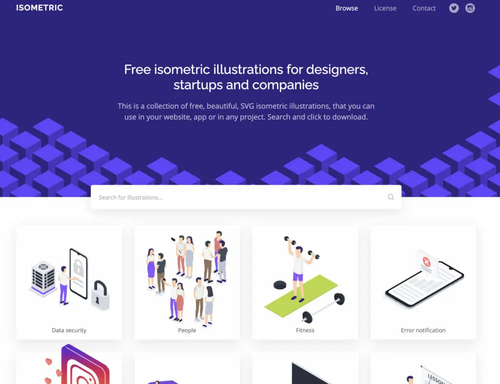 お洒落なアイソメトリック(物体や人物を斜め上から俯瞰したような構図)で描かれたイラスト素材が取り揃えられています。