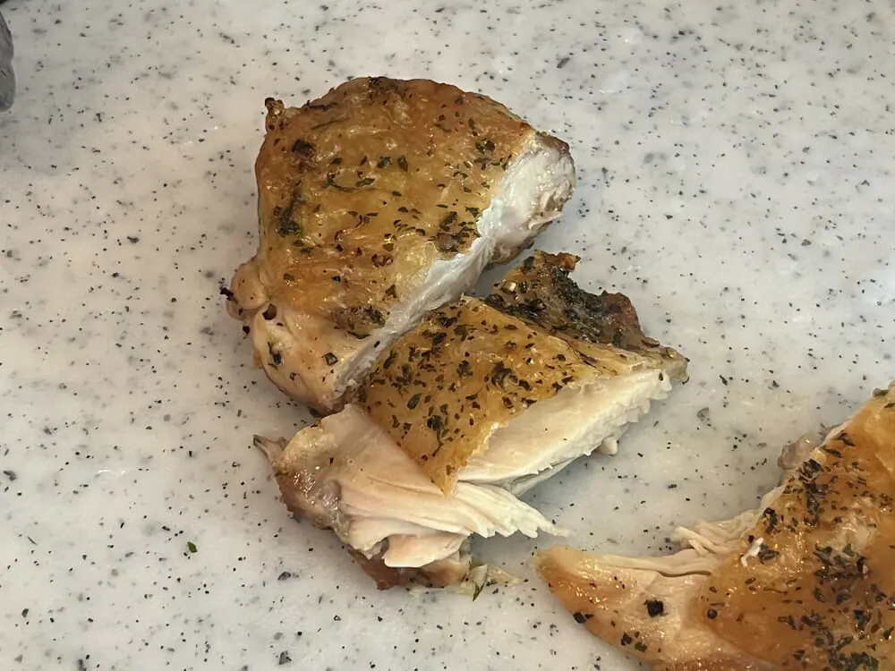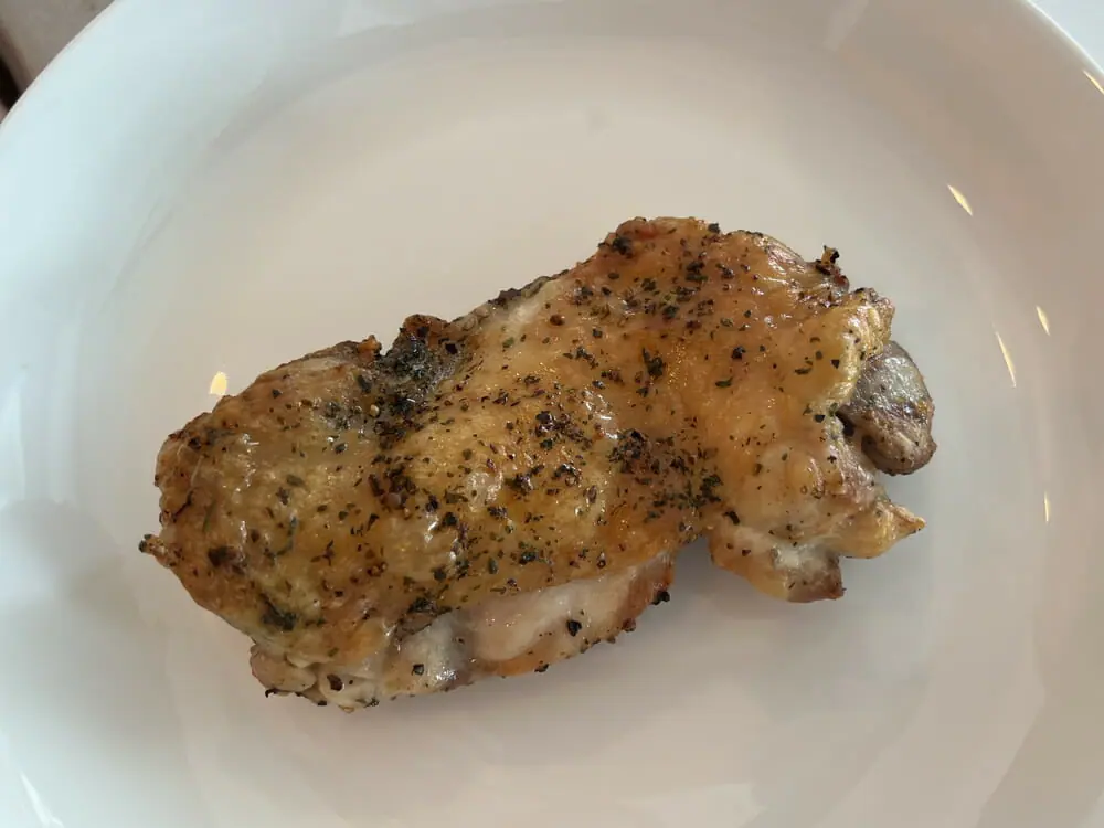 ▼鶏肉の両面がシッカリと黄金色に焼きあがっている。