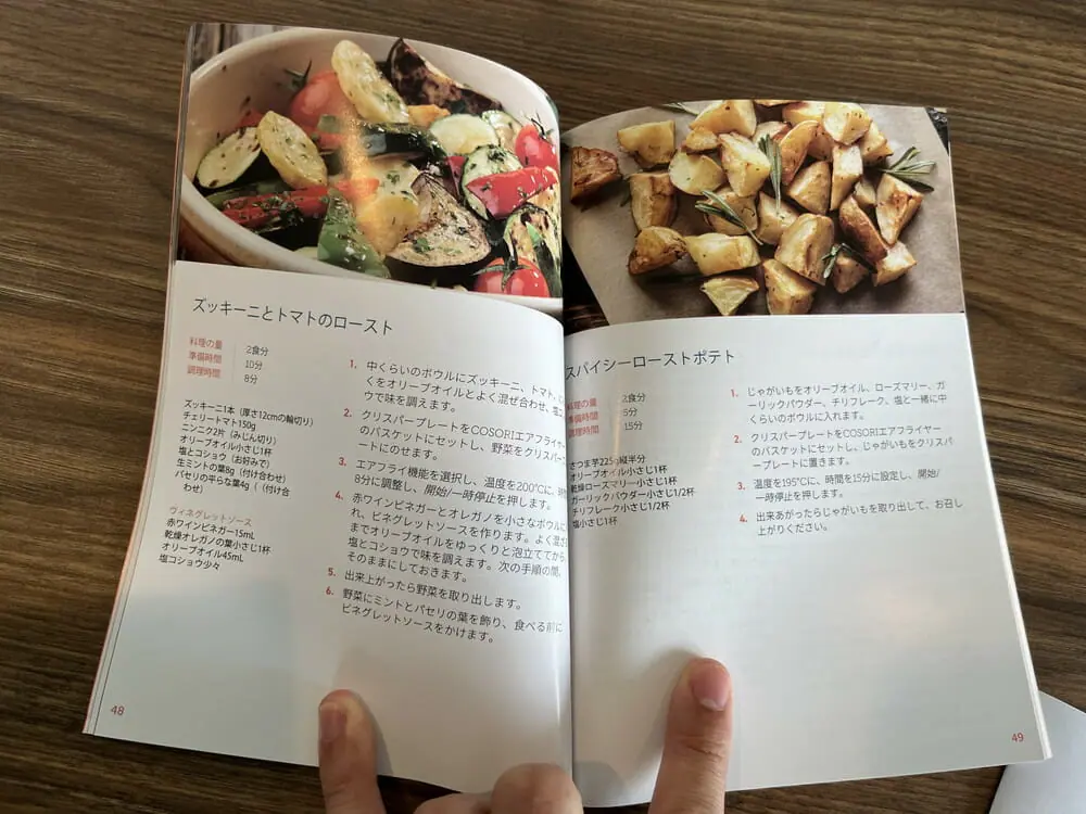 ▼付属のレシピブックには、ノンフライヤーを利用した料理が多数掲載されている。