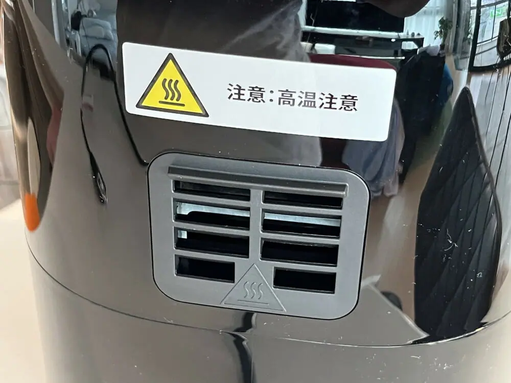 ▼また、背面の排熱口からは熱い熱風が噴き出すので、ノンフライヤーの設置場所には注意が必要だ。