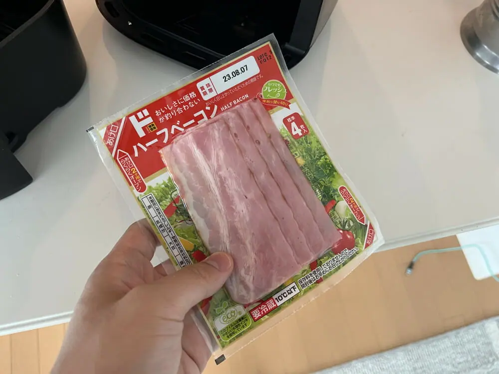 まず最初に、いたって普通のベーコンをバスケットに入れて調理してみた。