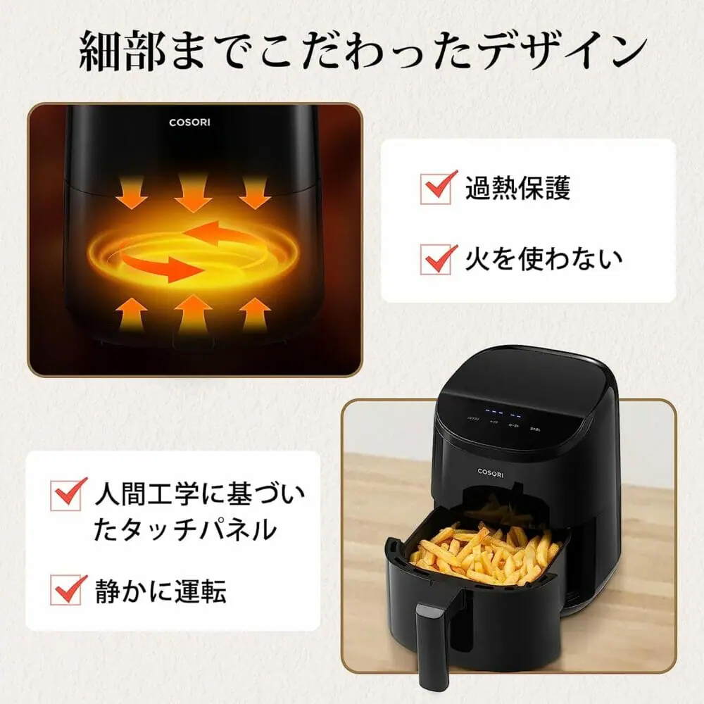今回紹介した『COSORI LITE 2L ミニノンフライヤー』について、特長をまとめると以下の通りだ。
