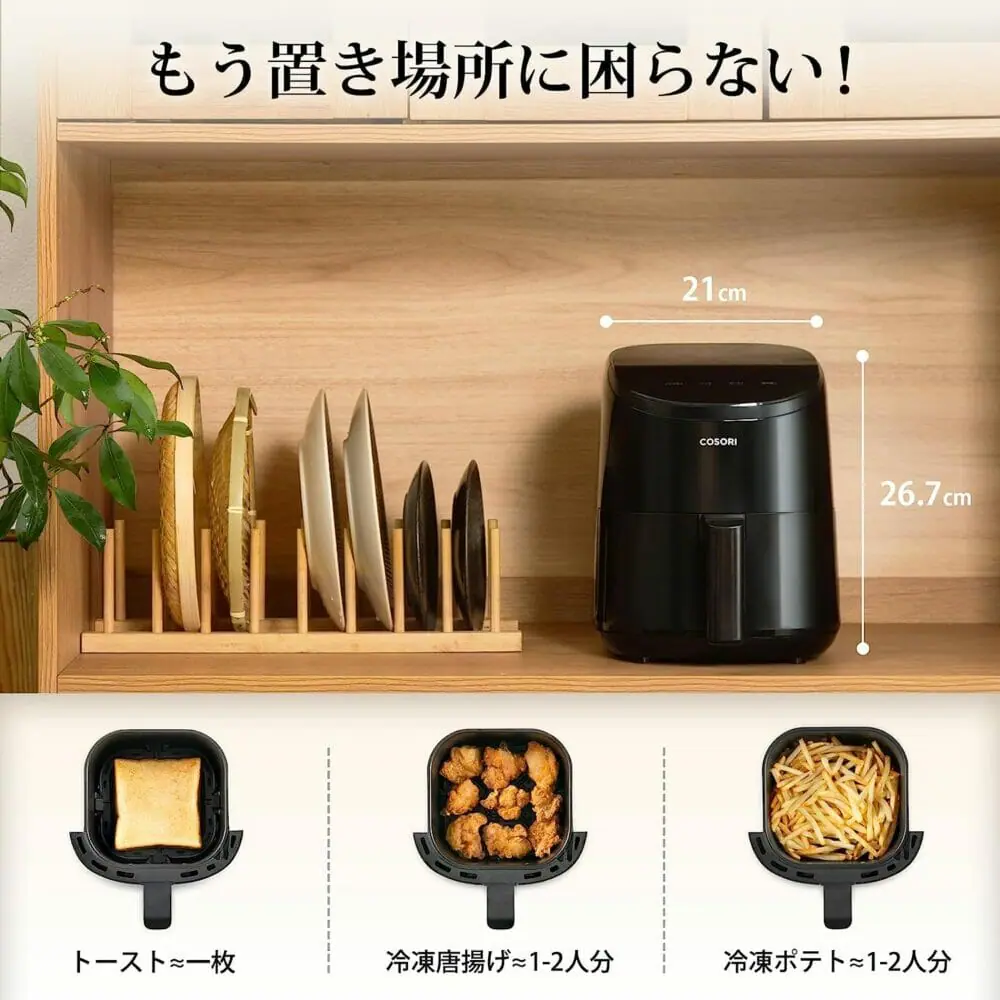 今回紹介する『COSORI LITE 2L ミニノンフライヤー』は、誰でも簡単にヘルシーな本格調理を楽しめる便利器具だ。