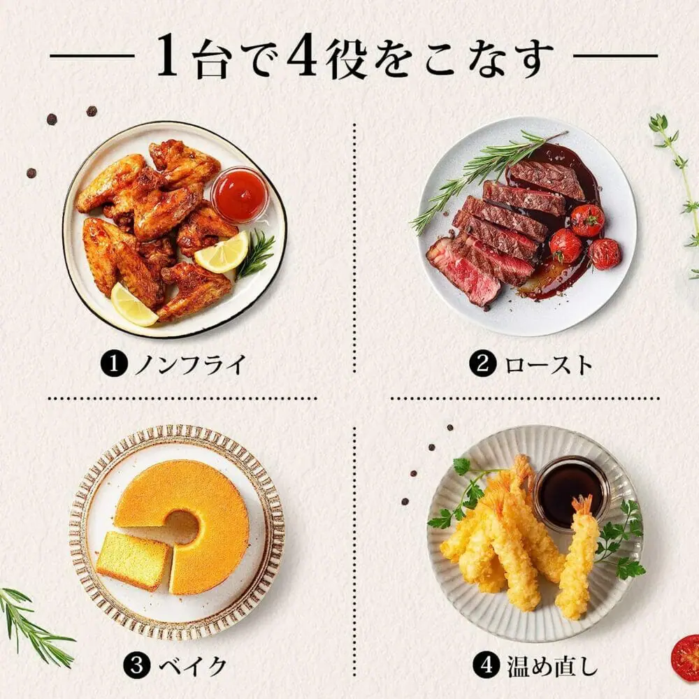 ▼ノンフライ、ロースト、ベイク、温めなおしの1台4役。