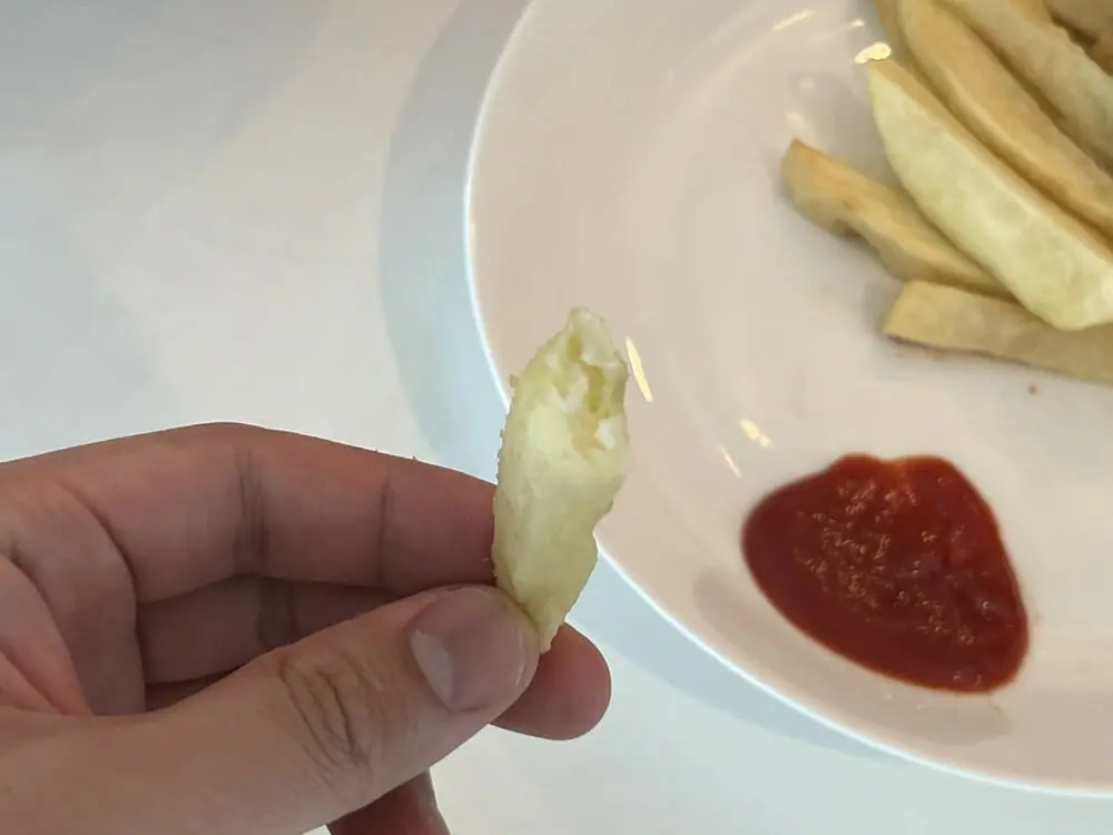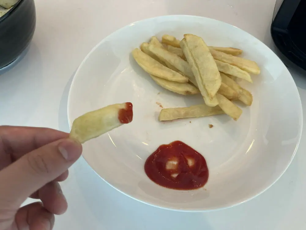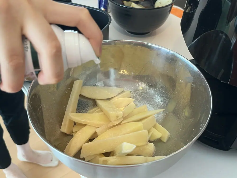 オイルスプレーで吹き付けた油のおかげで表面がカリカリに揚がっており、サブウェイなどで食べるフライドポテトに近い食感を再現することが出来た。