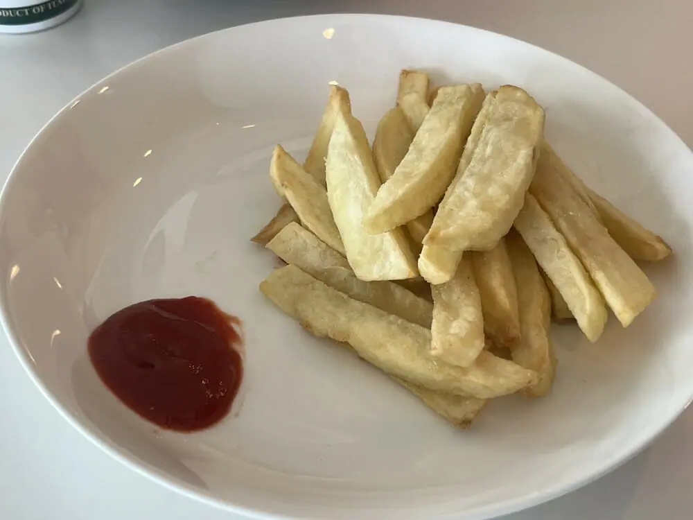 ▼調理後は塩を軽くまぶして、ケチャップと共に食べてみた。