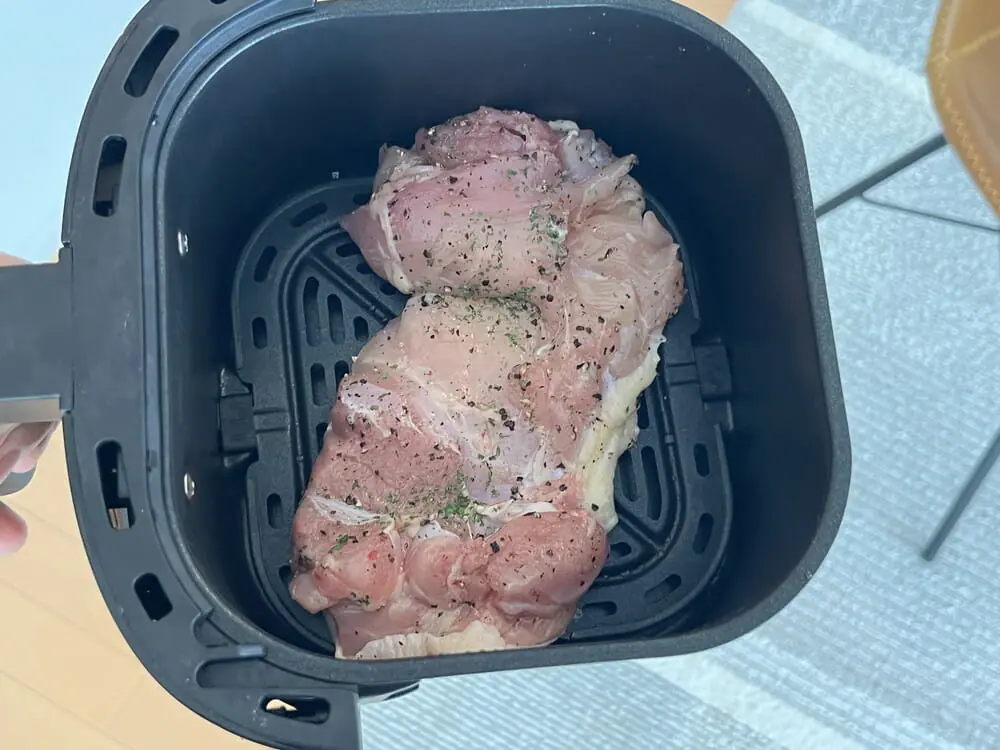 あとはノンフライヤーに入れて、ノンフライモードで195度・15分ほど加熱させてみた。