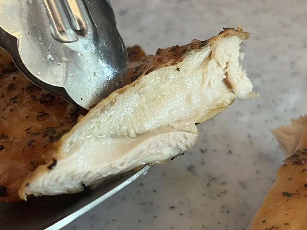▼余分な脂分が取り除かれたことで、肉がギュッと締まってとても歯ごたえが良い。