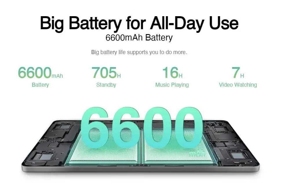 CPUには "Unisoc Tiger T606 オクタコアプロセッサー" を採用しており、6GB LPDDR4X RAM(メモリ)を搭載。大抵の作業を快適にこなすことが可能だ。なお、RAMは最大11GBまで拡張可能。