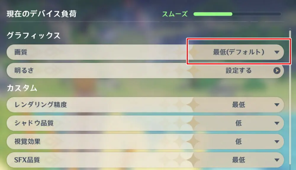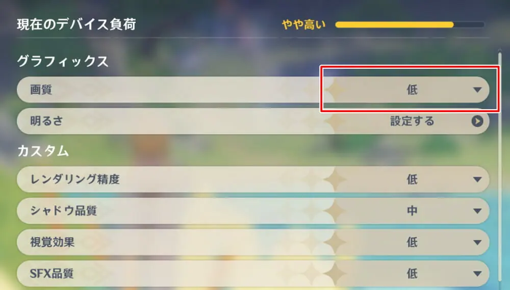 ▼ "低" に上げるとデバイス負荷が高まるが、依然として快適なゲームプレイが可能であった。