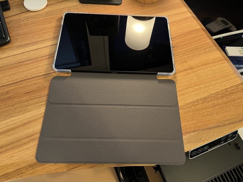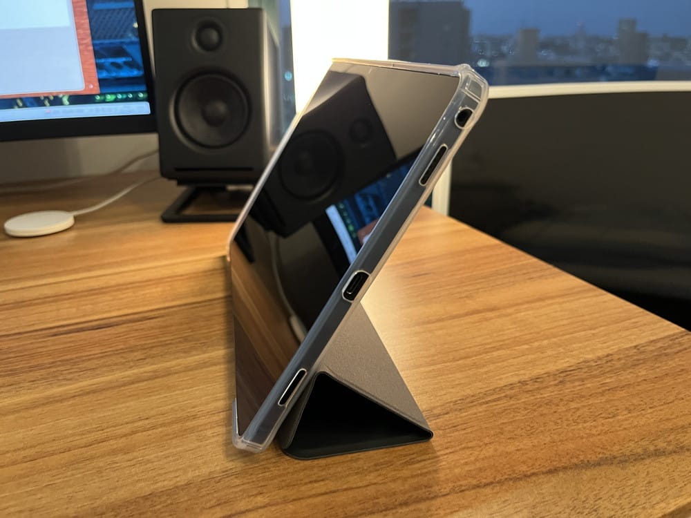 ▼ケースはディスプレイを保護できるだけでなく、簡易的なスタンドとしても機能する。