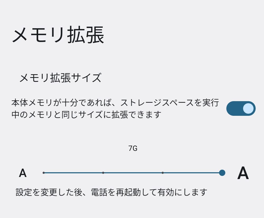 ▼ちなみに、設定アプリより最大7GBの仮想RAM拡張が可能だ。