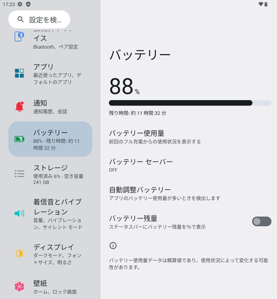 バッテリーの持ちも良く、普通にウェブブラウジングなどに使用している分には、丸1日充電しなくても大丈夫であった。33W急速充電に対応しており、わずかな充電時間であっという間にバッテリーを回復できる点もGOOD。