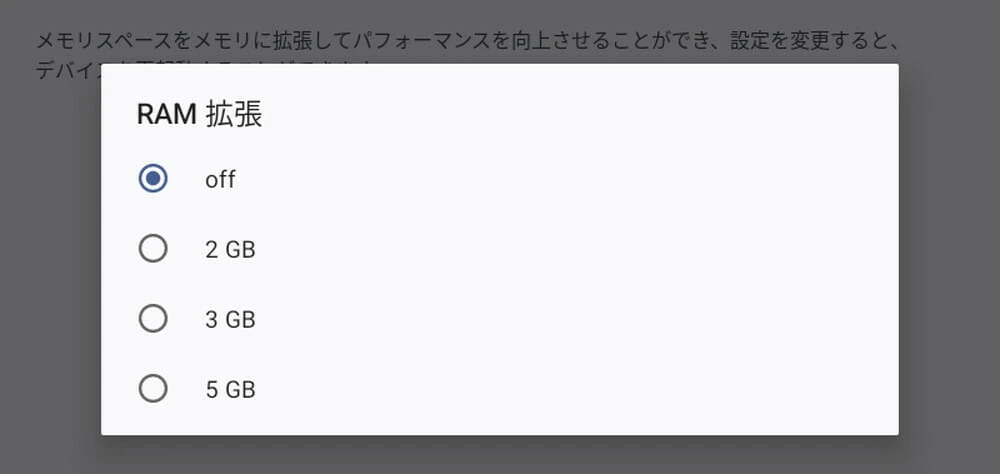 ▼ちなみに、設定アプリより最大5GBの仮想RAM拡張が可能だ。