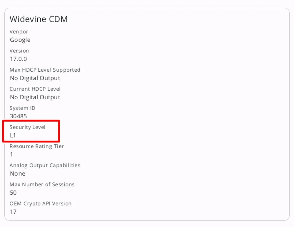 ▼なお、WidevineはL1をサポートしている。