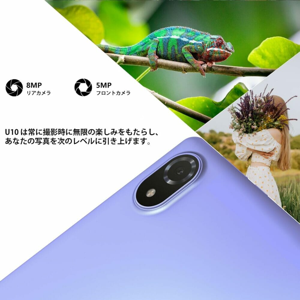 前面・背面にはそれぞれ5メガピクセル・8メガピクセルのカメラが内蔵。テレワークやオンライン授業用デバイスとしても活用できるだろう。