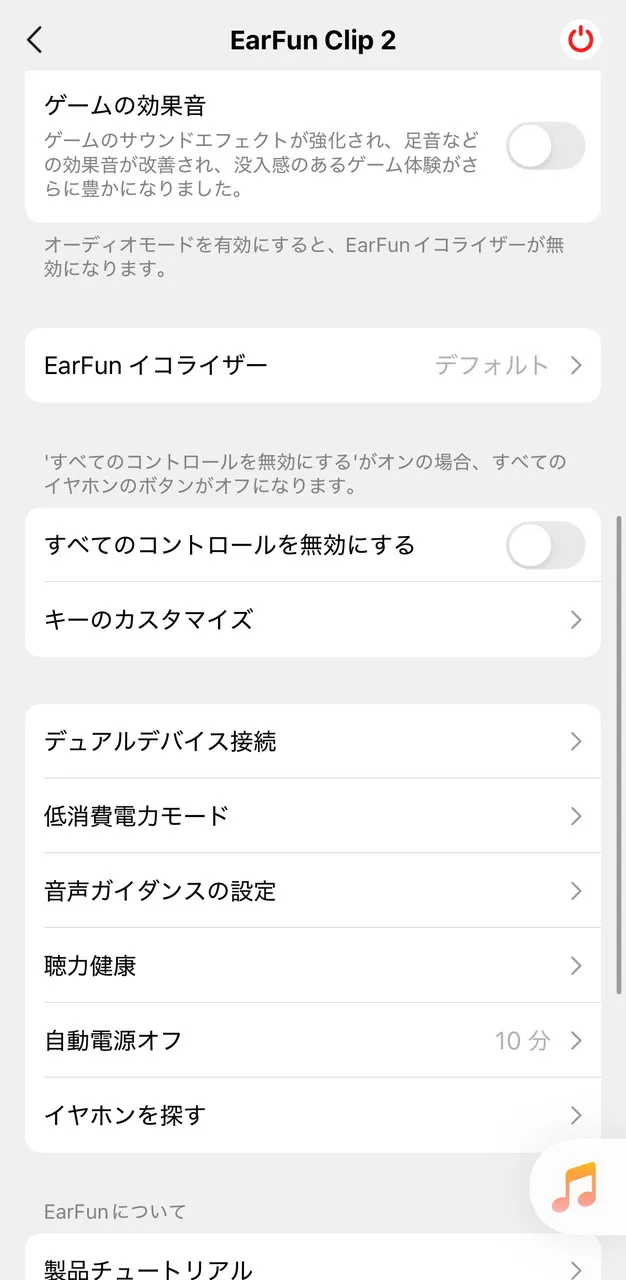 ボタン操作の変更やEQ(イコライザー)の調整など、用途に応じてカスタマイズすることが可能。ゲーム(低遅延)モードや、装着検出などの項目も用意されています。